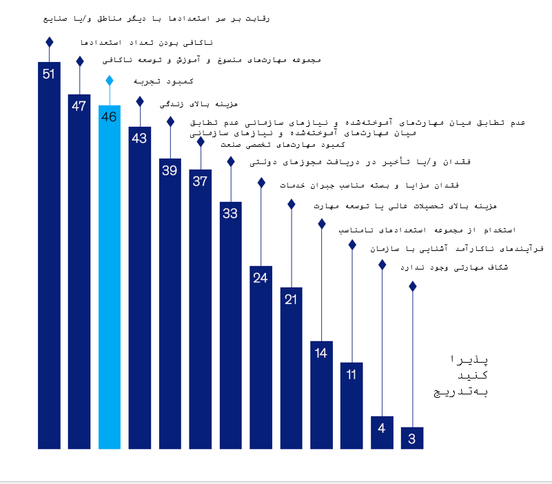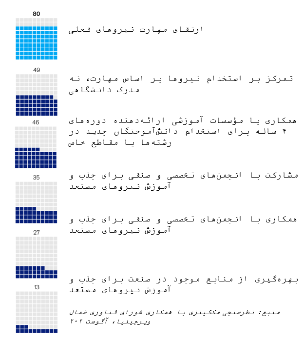 دلایل اصلی شکافهای مهارتی فنی در ایالات متحده؛ درصد پاسخدهندگان (n=70)